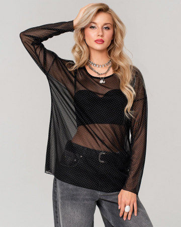 Лонгслив женский из сетки со стразами - трендовый элемент гардероба для создания интересных многослойных образов. Блеск придаёт лонгсливу свободного кроя особую загадочность. Кофта из сеточки очень приятна для тела. Он как будто обволакивает кожу. Вечерний топ из сетки - идеальное решение для тех, кто ищет стиль. Лонгслив идет удлиненный, учитывайте это при заказе. Эта прекрасная кофта доступна в различных размерах. Невероятно удобный и он поможет вам чувствовать себя комфортно в любое время года. Наш лонгслив сочетает в себе практичность и элегантность. Этот стильный элемент добавляет офисной одежде особую изюминку и привлекательность. Кофта в сетку имеет удлиненные рукава, которые великолепно подчеркнут вашу женственность. Он прекрасно дополнит ваш вечерний образ и создаст впечатление элегантности и стиля. Ощутите комфорт и получите массу комплиментов, надевая эту прекрасную вещь! Стирка в стиральной машине или руками в щадящем режиме (max t, °C – не более 30).