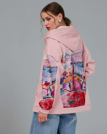 Толстовка женская с органзой - очень стильная и необычная вещь, которая станет изюминкой вашего гардероба. Идеально подойдет как к спортивному повседневному, так и к нарядному образу. Благодаря вставкам из органзы на рукавах и спине, толстовка выглядит очень необычно и красиво. Вы сможете создать множество модных образов с этим изделием. Капюшон и боковые карманы делают толстовку очень удобной и комфортной. Спущенная линия плеча и оверсайз крой позволяет изделию идеально сидеть на любой фигуре. Необычный принт на спине точно привлечет внимание к вашему образу, а толстовка станет любимой вещью в гардеробе.