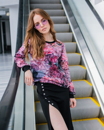 Свитшот с принтом сделан из интерлока - материала, который с изнаночной стороны состоит из хлопка, а снаружи имеет специальный полиэстеровый слой для стойкого нанесения рисунка. Благодаря этому изделие приятно для тела, а принт спокойно переживет хоть сотню стирок и останется таким же ярким и сочным.