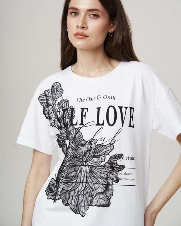 Коллекцию трендовых футболок от российского бренда SAHAR Art lab отличает оригинальный авторский принт и модный дизайн! Базовые модели выполнены из премиальной хлопковой кулирки турецкого производства (хлопок 95%, лайкра 5%). Особенностью ткани является отличный воздухообмен, легкий уход, износоустойчивость, сохранение формы и цвета после многочисленных стирок. Творческая команда дизайнеров и художников создает эксклюзивные вещи по тщательно продуманным лекалам. Современные модели прекрасно сидят на женщинах с любой фигурой. Прямой свободный крой, легкий оверсайз, оптимальная длина, округлый вырез и широкие, немного удлиненные рукава делают футболку незаменимым предметом женского гардероба! Стильная вещь белого цвета украшена рисунком и аппликацией из кружева. Нарядная трикотажная футболка дополнит наряд для пляжного отдыха на море, будет с удовольствием носиться в качестве повседневной на работе, дома или во время прогулки.