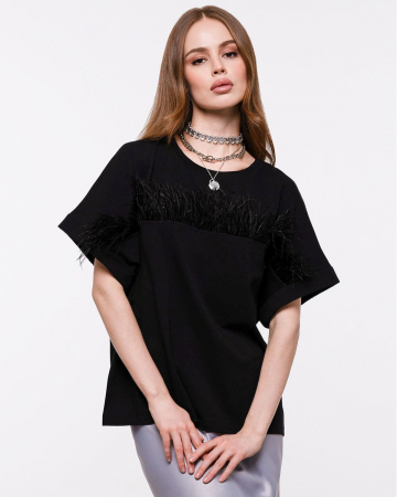 Футболка с перьями — экстравагантная находка для тех, кто следит за fashion индустрией. Роскошный тренд с мировых подиумов и из последних лукбуков модных брендов станет изюминкой вашего гардероба.