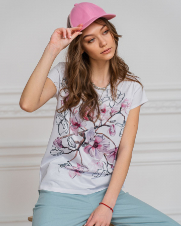 Футболка сделана из мягкого вискозного трикотажа — тонкого и приятного для тела материала, который способен украсить любой гардероб. Яркие сочные дизайнерские принты сохраняют свою стойкость в течение нескольких сезонов, они будут радовать вас даже после множества стирок.