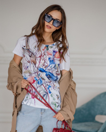 Удобная, стильная и качественная - такой должна быть идеальная женская футболка. Эта модель прямого лаконичного кроя сшита из премиальной турецкой ткани. Спинка и рукава из хлопка, а полочка из вискозы - это позволяет принтам оставаться яркими и не выцветать. Неповторимые авторские рисунки, наши дизайнеры придумывают ориентируясь на мировые модные тенденции.