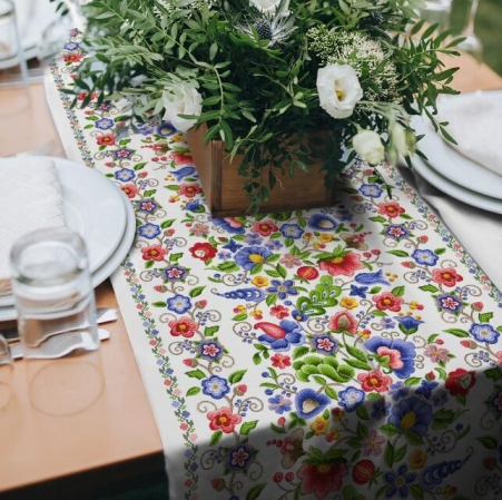 Дорожка-элемент декора, позволяющий сделать сервировку стола более оригинальной и интересной, наполнит свежестью и украсит Ваш интерьер. Дорожки очень популярны в современном мире, поэтому мы предлагаем Вам широкий ассортимент расцветок и дизайнов. Изделия выполнены из плотного материала-диагонали, плотностью 240 г/м2. Дорожки можно расположить вдоль стола или поперек, используя одну или сразу несколько, комбинировать со скатертями. Дорожки не только сморятся стильно и нарядно, но и защищают стол от загрязнений и царапин, сохраняют столешницу от перегрева. Дорожки имеют приемлемую стоимость и будут по карману любой хозяйке. Сервировка стола с дорожкой - стильное решение для Вашего дома!