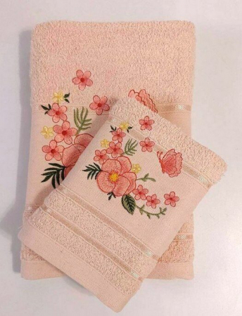 Махровое полотенце "Анютины глазки"-персик 70*140 см. хлопок 100% (арт. 1864321071)