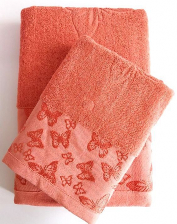 Махровое полотенце "Вальс бабочек"-коралл 50*90 см. хлопок 100% (арт. 69580466)