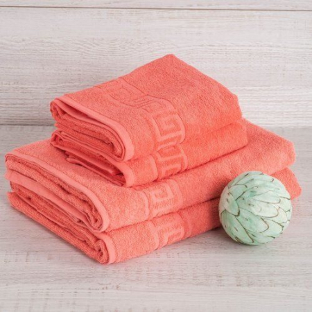 Махровое полотенце "Греческий бордюр"-коралл 50*90 см. хлопок 100% (арт. 0371810727)