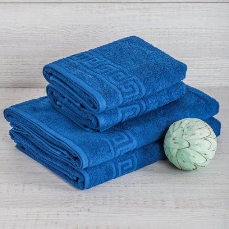 Махровое полотенце "Греческий бордюр"-синий 70*140 см. хлопок 100% (арт. 0424875967)