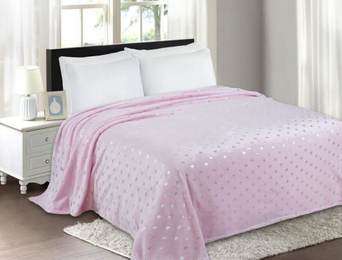 Плед велсофт Премиум "Сердечки" розовый-серебро 150*200 см. (арт. 1254412785)