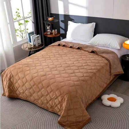 Велюровое стеганое покрывало «Шик» 230х250 – превосходное решение для создания уюта в спальне. Мягкий бархатный велюр на ощупь придаст ощущение роскоши и комфорта. Этот изысканный текстильный аксессуар выполнен из гипоаллергенной ткани, что делает его лучшим выбором для людей с чувствительной кожей или аллергией. Оно изготовлено с использованием высококачественных материалов, что обеспечивает его прочность и долговечность. Способно выдержать множество стирок без потери своих качеств и внешнего вида, будь то вручную или в стиральной машине. Это дает возможность вам наслаждаться красивым пледом на протяжении долгого времени. Одним из главных преимуществ этой коллекции является простота в уходе. Изделие не садится и быстро сохнет, что значительно облегчает его поддержание в чистоте и порядке. Покрывала отлично вписываются в любой интерьер детской или взрослой спальни и станут украшением для вашей квартиры или дачи!