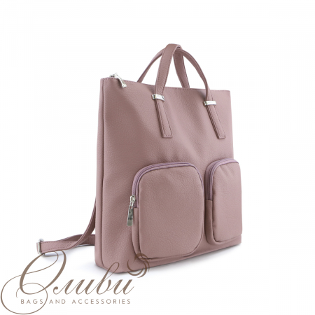 Сумка-рюкзак женская Оливи, мягкая на двух регулируемых ручках. Одно отделение на молнии.Внутри: карман для документов на молнии, закрытый карман, открытый карман. Передняя стенка - два кармана на молнии. Задняя стенка - карман на молнии