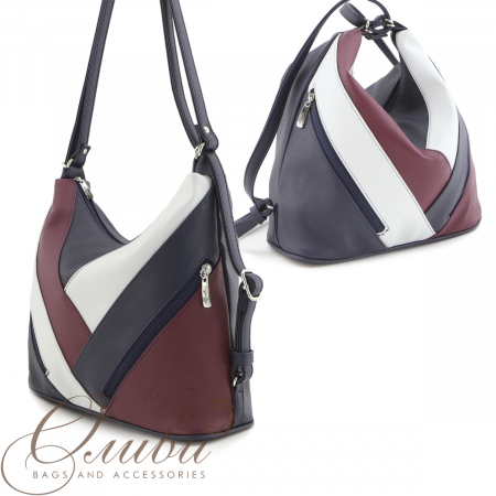 Сумка-рюкзак женская Оливи, мягкая на двух регулируемых ручках. Одно отделение на молнии.Внутри: карман для документов на молнии, закрытый карман, открытый карман. Передняя стенка - два кармана на молнии. Задняя стенка - карман на молнии