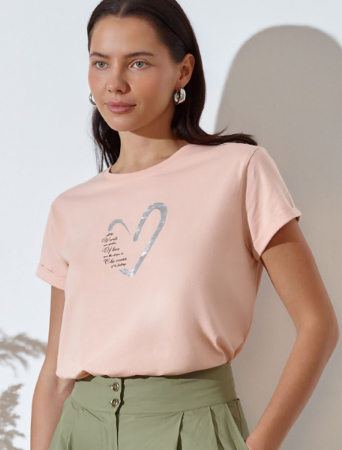 Модная футболка пцдрового цвета привлекает внимание своим интересным дизайном и ярким принтом. Благодаря прямому крою изделие комфортно садится на любую фигуру, в том числе на большие размеры, и не сковывает движений. Круглый вырез подчеркивает современный стиль, а натуральный материал из хлопка с добавлением эластана обеспечивает удобство в повседневной носке и приятные тактильные ощущения. Прочность и износостойкая структура сохраняет первоначальную форму футболки после множества стирок. Рукава имеют аккуратные подгибы, что придает изделию завершенность и помогает сохранять аккуратный внешний вид. Принт в виде сердца и надписи нанесен красками с устойчивым покрытием, перевод надписи: All the word even spoken of love are the drops in the ocean ol its feeling - Все слова, даже произнесенные о любви, — это капли в океане ее чувств. Стильная футболка гармонично вписывается в любой гардероб и подойдет для прогулок, отдыха дома или неформальных встреч. Благодаря особенностям кроя модель хорошо сидит, скрывая недостатки и подчеркивая достоинства. Удобная футболка идеально сочетается с базовыми вещами, позволяя создавать новые интересные образы каждый день.