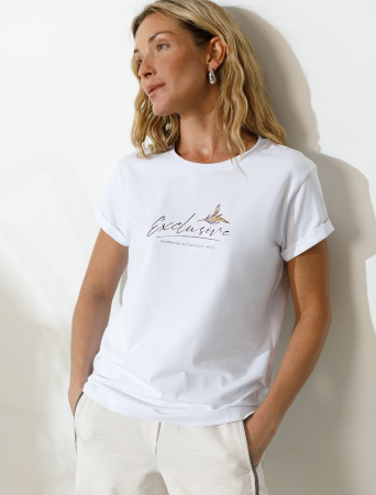 Модная футболка белого цвета привлекает внимание своим интересным дизайном и ярким принтом. Благодаря прямому крою изделие комфортно садится на любую фигуру, в том числе на большие размеры, и не сковывает движений. Круглый вырез подчеркивает современный стиль, а натуральный материал из хлопка с добавлением эластана обеспечивает удобство в повседневной носке и приятные тактильные ощущения. Прочность и износостойкая структура сохраняет первоначальную форму футболки после множества стирок. Рукава имеют аккуратные подгибы, что придает изделию завершенность и помогает сохранять аккуратный внешний вид. Принт в виде надписи нанесен красками с устойчивым покрытием, перевод надписи: Exluzive moments collection only - Только коллекция эксклюзивных моментов. Стильная футболка гармонично вписывается в любой гардероб и подойдет для прогулок, отдыха дома или неформальных встреч. Благодаря особенностям кроя модель хорошо сидит, скрывая недостатки и подчеркивая достоинства. Удобная футболка идеально сочетается с базовыми вещами, позволяя создавать новые интересные образы каждый день.