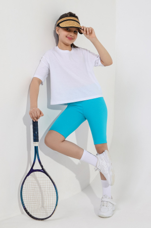 Бриджи-велосипедки для девочки из трикотажного полотна "кулирка с лайкрой" классические, плотного прилегания к телу.