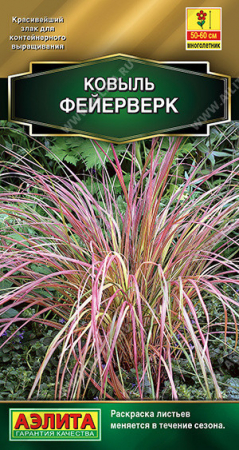 Эффектный многолетний злак 50-60 см высотой. Впечатляет раскраской листьев, которая, как у хамелеона, меняется в течение сезона. Ажурные колоски дополнительно украшают кустики с июня по сентябрь. Ковыль ФЕЙЕРВЕРК идеально подходит для объемных садовых вазонов, центра приподнятой клумбы, альпийской горки. Одиночное растение или небольшие группы хорошо смотрятся на фоне газона. Соцветия используются в срезке для живых и сухих цветочных композиций.