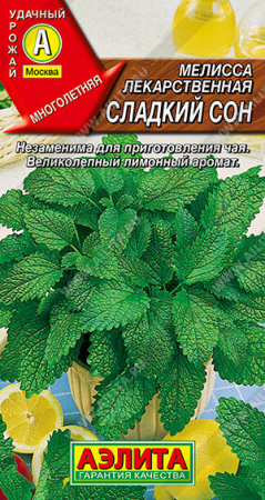 Раннеспелый сорт популярного ароматного многолетника. От всходов до начала цветения 70-80 дней. На одном месте выращивается 3-5 лет. Растение кустовое, сильнооблиственное. Кусты хорошо разветвленные, высотой 50-60 см, O 40-50 см. Масса одного растения 150-200 г. Окраска цветков голубовато-белая. Мелисса – отличный медонос. Яркий лимонный аромат и пряный вкус делают ее незаменимой для приготовления чая, отдушки уксуса, ароматизации ликеров и настоек. Листья и молодые побеги используют в свежем и сушеном виде. Урожайность зелени 2-2,5 кг/м2.