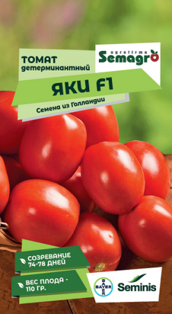 Яки F1 считается эталоном гибрида салатного томата грушевидной формы. Созревание в основной сезон, в среднем через 75-84 дня после пересадки. Генетическая комбинация мощного, здорового растения с великолепным плодообразованием и очень крупным размером для данного сегмента вытекает в супервысокие урожаи, намного более высокие, чем у большинства других томатов данного класса. Размер плода Яки F1 средний или крупный. Гибрид легко адаптируется к различным условиям выращивания. Завязывание равномерное по срокам, а также по размеру и форме плода на протяжение всего сезона. Средний вес плода 85 - 105 г, плоды редко расположены на кисти.