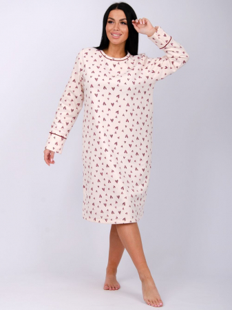 Женская сорочка больших размеров - это отличный вариант одежды. Теплая и уютная туника их мягкой хлопковой ткани с начесом. За счет свободного кроя сорочка будет удобна для сна, а благодаря своей длине, а также длинному рукаву не даст замерзнуть в прохладные ночи. Материал футер с начесом - это гипоаллергенная и приятная к телу ткань.
