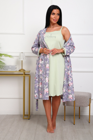 Пеньюар с сорочкой на тонких бретелях. Пеньюар запашной, с боковыми карманами, с поясом. Комфорт 100%-ого хлопка и удобная посадка изделий. Женственный нежный принт пеньюара и лаконичный принт на сорочке создают стильный и уютный образ.