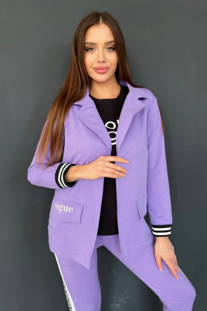 Жакет прямой, длиной до середины бедра, с английским воротником. Рукав втачной, длинный, на эластичном манжете. В нижней части полочки расположены клапаны.