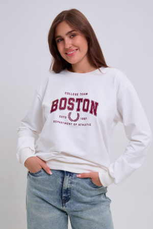 Женский свитшот свободного прямого кроя с круглой горловиной и слегка приспущенными плечами. Спереди нанесён принт в виде надписи Boston. Выполнен из мягкого и приятного материала футера 2-х нитки, обеспечивающего дополнительный комфорт и сохранение тепла даже в холодную погоду. Доступен в сдвоенных размерах, что удобно для подбора идеальной посадки. Подходит как для повседневной носки, так и для создания эффектных образов в любом стиле.