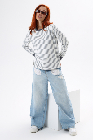 Представляем вашему вниманию стильный женский хлопковый лонгслив в полоску, который станет отличным дополнением к вашему гардеробу. Особенностью этого лонгслива является его состав, который состоит из 92% хлопка, а также, 8% лайкры. Классический лонг с длинными рукавами и круглым вырезом под горловину удобен для повседневного ношения. Полосы вязанные.