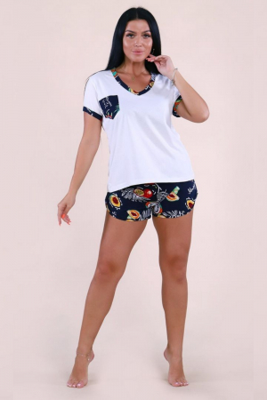 Женская пижама с шортами Ананасы представляет собой комплект из футболки с коротким рукавом и шорт, изготовленный из 100% хлопка (кулирка), доступный в широком размерном ряду, включая большие размеры.