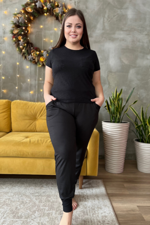 Брюки женские свободные, низ брюк на широкой манжете. На передней половинке брюк внутренние карманы. Пояс прострочен на многоигольной машине. На модели 52 размер