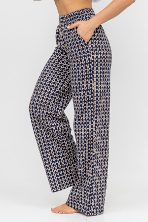 Женские стильные брюки - трубы выполнены из нового трендового 100% хлопчатобумажного полотна. Высокая посадка, вместительные боковые карманы, удобный и качественно обработанный на специальной машине пояс позволит Вам чувствовать себя комфортно. Широкие трубы смотрятся очень элегантно и женственно. Они стали трендом сезона, поскольку подчёркивают стройность и привлекательность ног, а прямой крой скрывает недостатки фигуры. При помощи такой модели можно сделать пропорции тела более сбалансированными. Женские брюки-трубы отличный предмет гардероба для любой представительницы прекрасного пола. В модели такого плана Вы будете чувствовать себя комфортно дома, на отдыхе, на даче и на море. Можете приобрести изделие в качестве подарка на любой праздник: день рождения, 8 марта, 14 февраля и просто так для души. Брюки можно купить с футболкой - костюм 36738.
