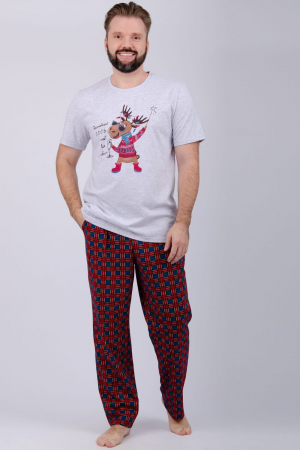 Пижама мужская: футболка прямого кроя с короткими рукавами с принтом на полочке, брюки прямые, с карманами в боковых швах.