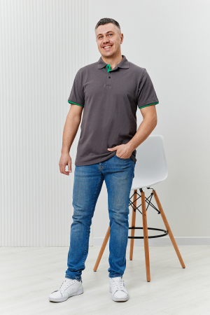 Футболка поло мужская из ткани пике с вязанным воротником. Планка и рукава с контрастной отделкой. Поло подойдет для повседневной носки, отдыха и спорта.