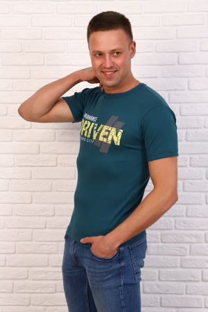 Мужская футболка из кулирки. Короткие рукава, круглая горловина, прямой силуэт. Полочка украшена печатью. Подойдет на любой случай жизни.