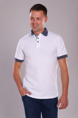 Футболка поло мужская из ткани лакост пике 100% хлопок. Вязаный воротник и манжеты в контрастном сером цвете. Планка выполнена на трех пуговицах с выделенным цветом нижней планки. Футболка очень удобна и комфортна в носке. Подойдет для дома, отдыха и прогулок. Сохраняет цвет и форму после стирки