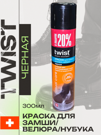 Аэрозоль-краска для замши, велюра и нубука Twist Fashion содержит натуральные пигменты, которые бережно окрашивают изделия и эффективно ухаживают за кожей. Краска-аэрозоль Twist Fashion Care обогащена воском жожоба, который создает прочную водоотталкивающую пленку, предотвращающую контакт обуви, одежды или аксессуаров с влагой, грязью и солью. Грязь не будет впитываться, что значительно упростит процесс чистки обуви. Кроме того, Twist ответственно относится к проблеме защиты окружающей среды, поэтому аэрозоль-краска Twist Fashion Care не содержит озоноразрушающих веществ.