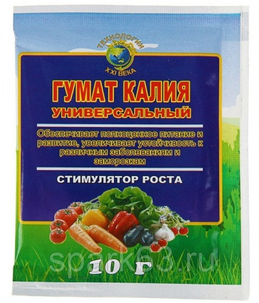 Применение гумата калия стимулирует прорастание семян, улучшает дыхание растений, увеличивает нарастание зеленой массы, предупреждает всасывание растениями тяжелых металлов из почвы.