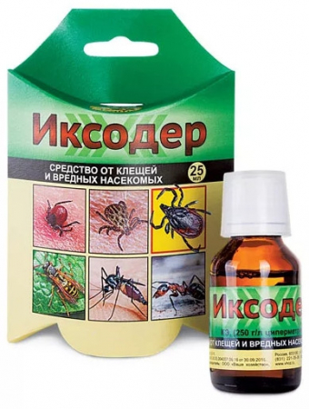 «Иксодер» оптимален для комплексной защиты территории против клещей, а также ос, шершней, муравьев… При этом практически не токсичен для птиц и дождевых червей, почвенных микроорганизмов. Обработку проводят путем опрыскивания или с помощью генератора аэрозольного тумана.