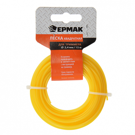 ЕРМАК ЛЕСКА ДЛЯ ТРИММЕРА КВАДРАТНАЯ, 2,4ММ Х 15М