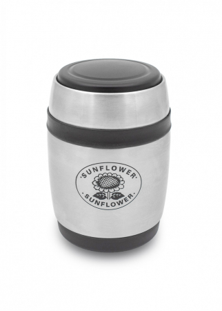 Сверху термос закручивается крышкой, из стали и пластика, которую можно использовать как чашку для напитка или миску для еды. Термос легко очищается и годами сохраняет первоначальный вид даже при ежедневных нагрузках. Он идеально подходит для рыбалки, охоты, туристических походов и пикников.