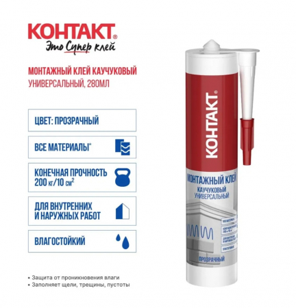 Универсальный клей на основе синтетического каучука для склеивания большинства строительных материалов при проведении монтажных и отделочных работ.