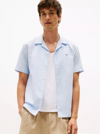 Tommy Hilfiger men's shirt. Our breathable and airy cotton-linen blend short-sleeve camp shirt is made from a dobby weave for subtle texture.