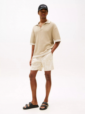 Tommy Hilfiger men's short. Made from a breathable cotton-linen blend, these palm print shorts offer a cool, comfortable fit. Designed with an elastic waistband and a zip and button closure, they offer a versatile, stylish silhouette.
