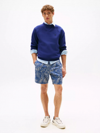 Tommy Hilfiger men's short. Made from a breathable cotton-linen blend, these palm print shorts offer a cool, comfortable fit. Designed with an elastic waistband and a zip and button closure, they offer a versatile, stylish silhouette.