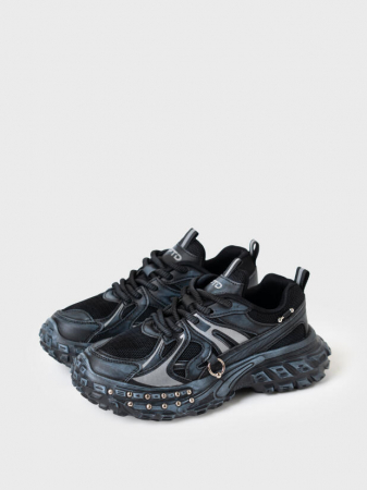 Молодежные кроссовки на массивной подошве. Подошва и верх обуви декорированы металлическими клепками и пирсингом. Кроссовки выполнены из дышащего текстиля и искусственной кожи с повышенной износостойкостью. Верх обуви и подошва имеют эффект затертости. Профилированная съемная стелька из натуральной кожи с анатомической формой подсводника обеспечивает правильную нагрузку на стопу. В носочной части обуви стоит текстильная подкладка c высоким содержанием хлопка 80%, которая обладает высокой гигроскопичностью. В пяточной части обуви текстильная подкладка обладает хорошей износостойкостью. Кроссовки имеют светоотражающие элементы. Формоустойчивый задник поддерживает стопу в правильном положении. Эргономичная форма колодки обеспечивает правильное формирование стопы ребенка. При всей своей массивности подошва из ЭВА очень легкая.