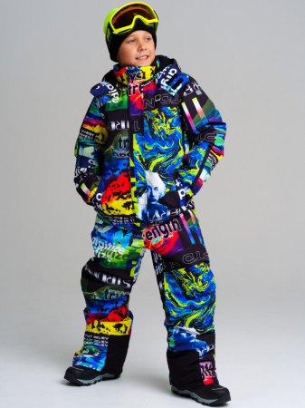 Мембранный материал делает этот яркий и модный комбинезон непромокаемым: мембрана не пропускает влагу снаружи, но выводит её изнутри, что крайне важно во время подвижных игр и занятий спортом.