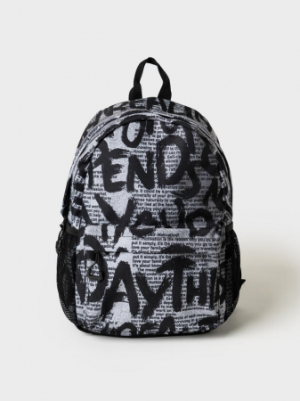 Стильный рюкзак для мальчика-подростка с принтом "газета". Прямые широкие регулируемые лямки с мягкими вкладками и сетчатым покрытием для улучшения вентиляции. Основной отдел на молнии с защитным клапаном. Спереди большой удобный карман на молнии с защитным клапаном, 2 боковых кармана из сетки на резинке. Внутри: отдел для папок, карман на молнии, 2 кармана без замка для телефона. Используется брендированная подкладка. Усиленная спинка и дно. Светоотражающие элементы на плечевых ремнях. Параметры: высота - 40 см, ширина -30 см, глубина - 15 см. Очень легкий