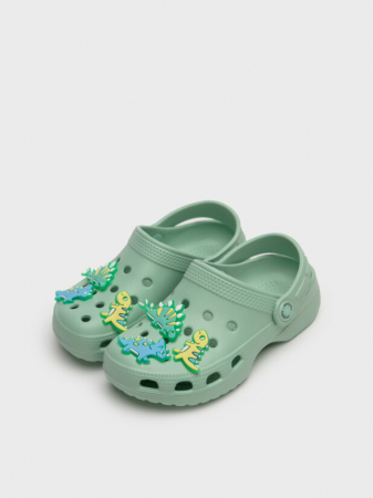 Сабо детские для мальчика. Сабо из облегченного и прочного ЭВА. Материал хорошо моется. Модель украшена джибицами-динозавриками. Форма модели учитывает эргономику стопы. Модель имеет перекидной ремешок для лучшей фиксации обуви на ноге. Благодаря вентиляционным отверстиям сабо проветриваются, ноги ребенка дышат и не потеют.