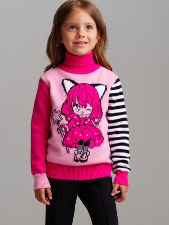 Свитер детский для девочки. Свитер из вязаного трикотажа с добавленим вискозы. Модный свитер жаккардовой вязки с высоким содержанием вискозы. Вискоза хорошо поглощает влагу, отлично пропускают воздух. Изделия приятны к телу, и не вызывают раздражения. Модель из капсульной коллекции CATS DREAM. Соберите полный образ в едином стиле!