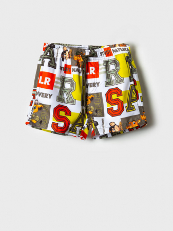 Плавательные детские шорты из быстросохнущего материала с водоотталкивающей пропиткой для мальчика. Бордшорты (swimshort) средней длины. Модель с подкладкой из мягкой сетки в виде трусов, карманы из сетки. Пояс на резинке с дополнительной регулировкой по талии шнурком. Благодаря UF-защите, ткань сохраняет первоначальный вид даже при длительном пребывании на солнце. Отличный вариант для пляжа и бассейна.