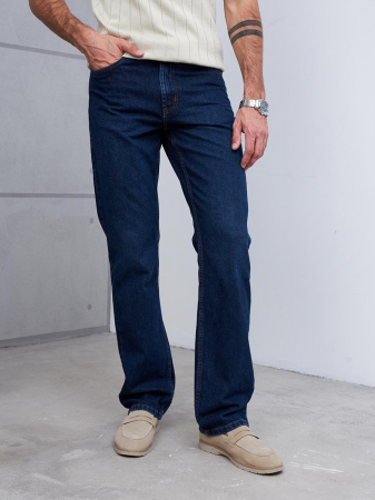 Мужские классические джинсы с пятью карманами. Эта модель выпускактся уже более 25-ти лет и все годы пользуется неизменной популярностью у наших покупателей. Посадка Regular fit (полуоблегающие по бедру), высокая талия, немного заужены к низу. Застежка на молнии. Выполнены из традиционной хлопковой ткани denim. Классическая темная стирка "stone wash".